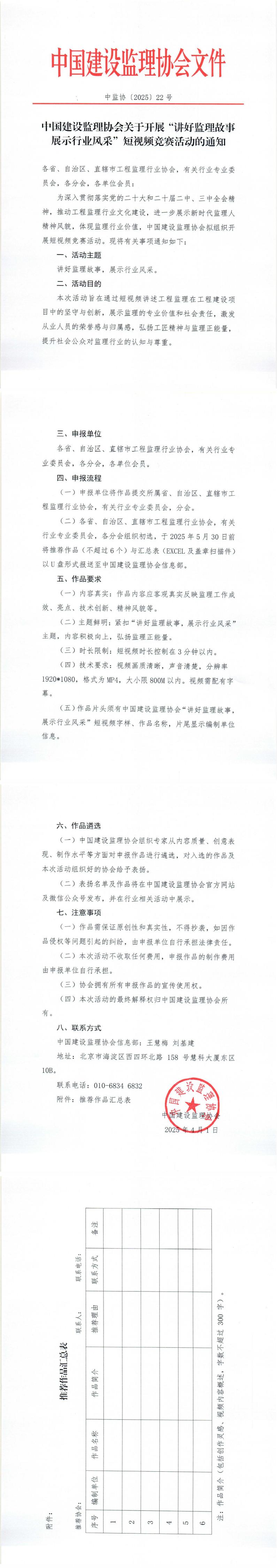 [轉(zhuǎn)]中國建設(shè)監(jiān)理協(xié)會關(guān)于開展“講好監(jiān)理故事 展示行業(yè)風(fēng)采”短視頻競賽活動的通知